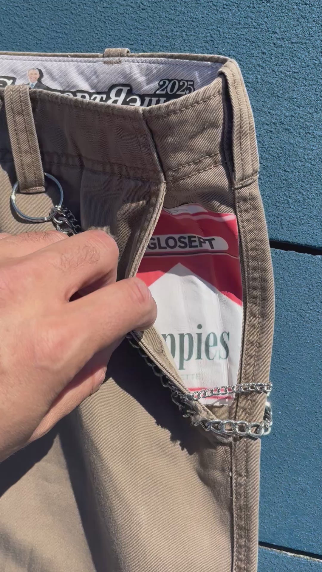 A Glosept Original Concept - A pack of cigarettes transferred into the front pocket of a pair of Vintage Denim.