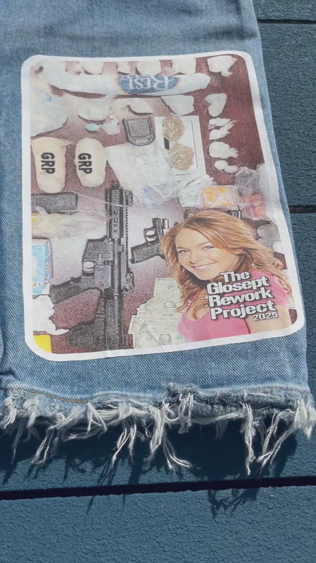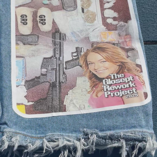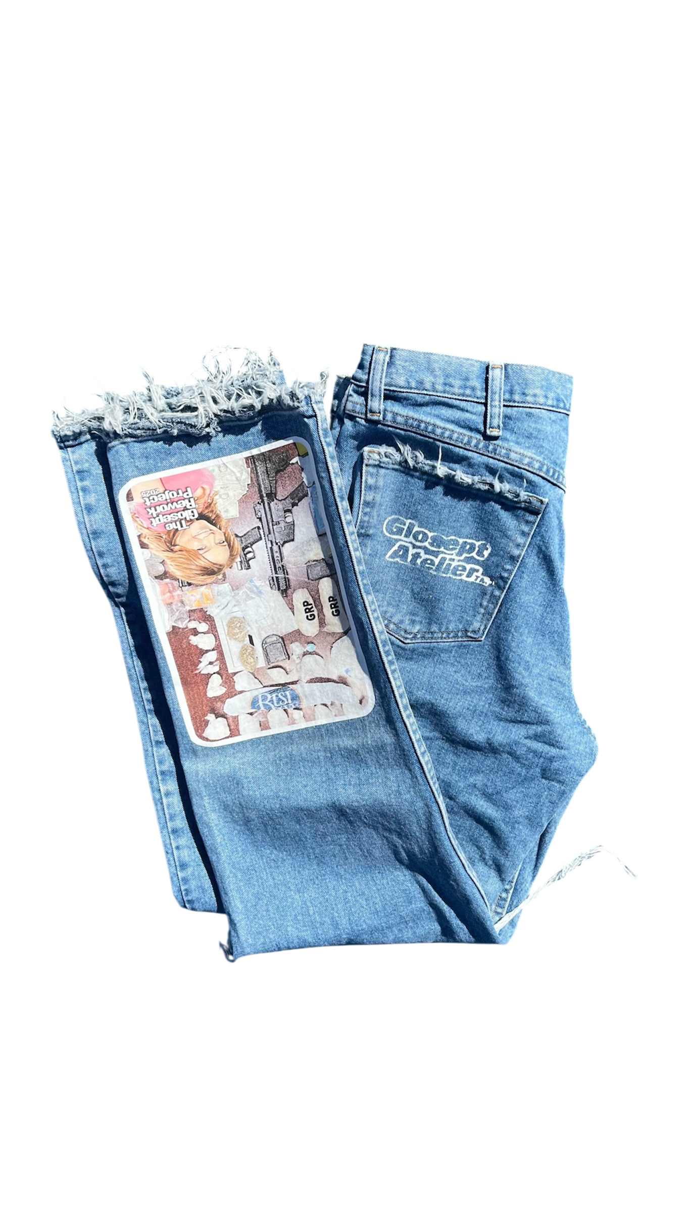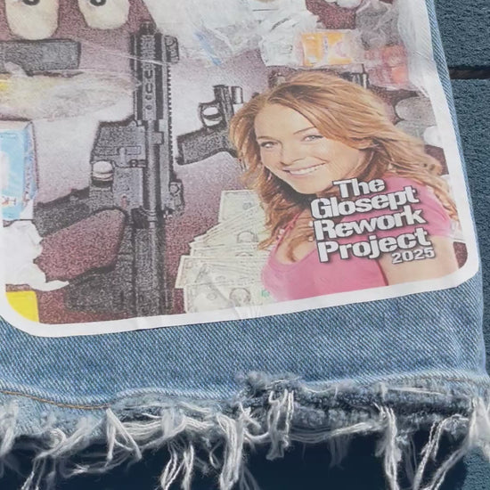 The base used here are a pair of up cycled relaxed fit wrangler jeans - fit uncuffed.