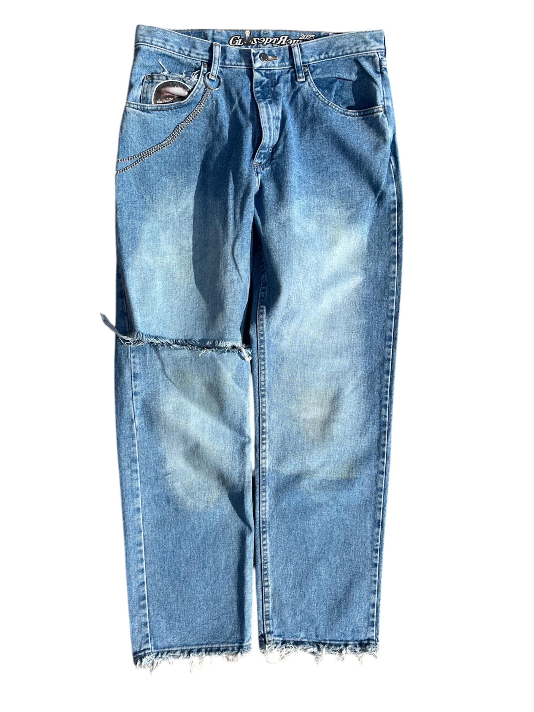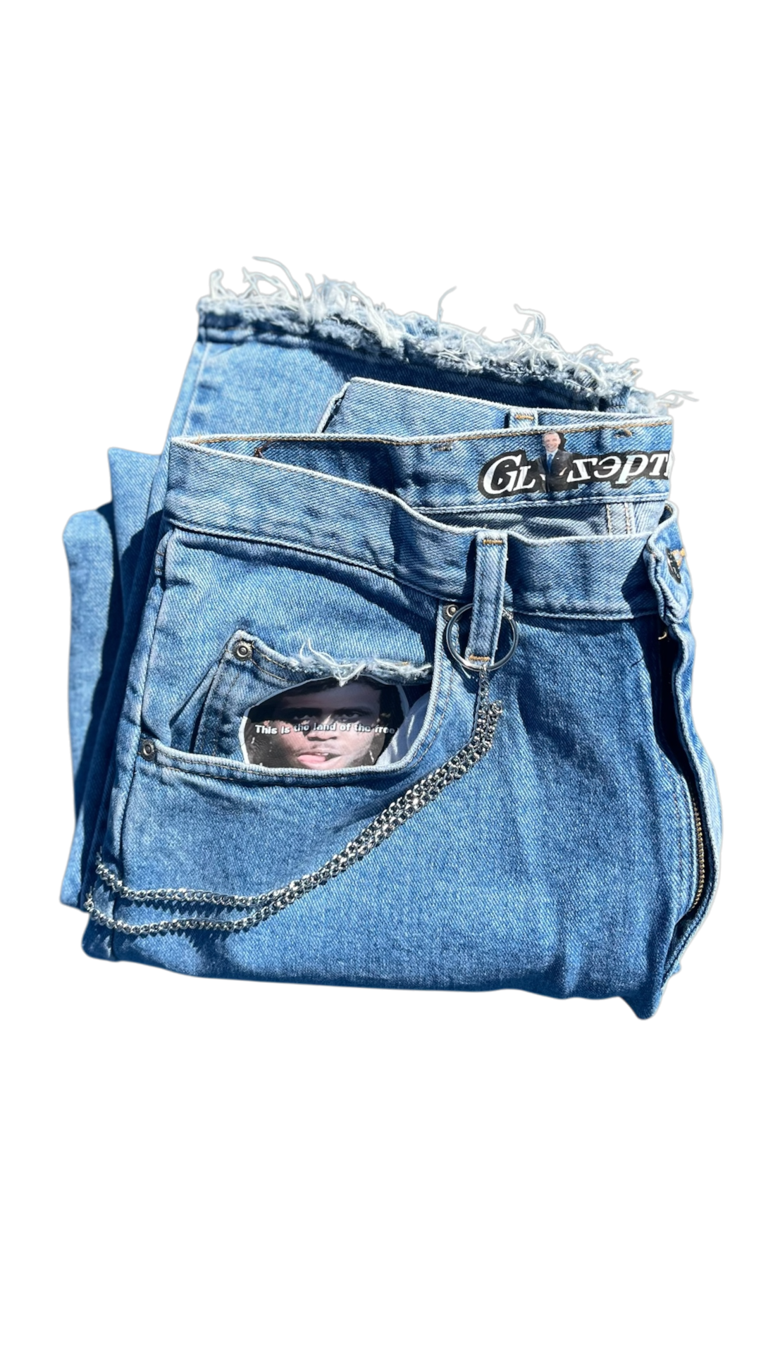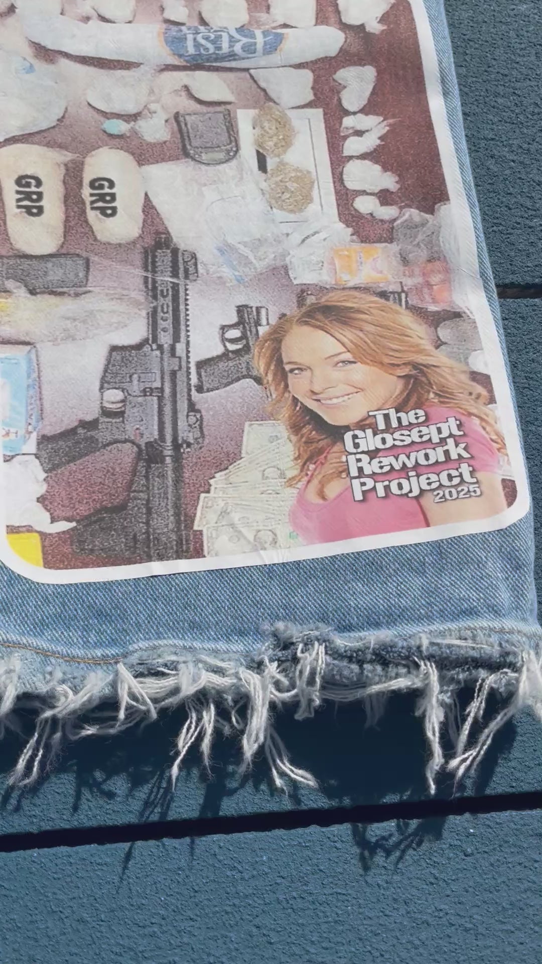 The base used here are a pair of up cycled relaxed fit wrangler jeans - fit uncuffed.